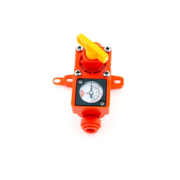 Denne mottrykksventilen fra Kegland kommer med integrert manometer, noe som gir god kontroll over trykket som man vil prøve å kontrollere ved f.eks. trykkgjæring på en Fermentasaurus eller Fermzilla.