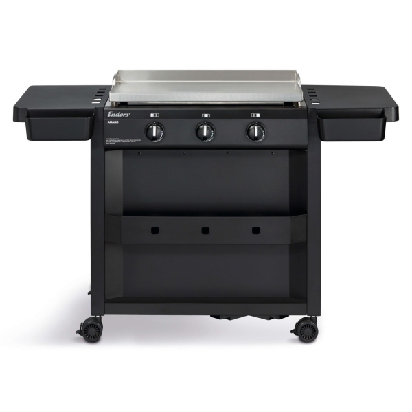Det avtakbare lokket beskytter ikke bare planchaen mot vind og vær mellom grilløktene, men kan også fjernes enkelt uten verktøy – med en stilig, matt finish! De sammenleggbare sidebordene og de praktiske krokene, hvor du kan henge kurver til krydder eller grillutstyr, gir deg alt du trenger innen rekkevidde. I tillegg gir det romslige oppbevaringsrommet foran ekstra plass til store flasker eller favorittsausene dine. Enders AMARO™ feirer en ny måte å grille på med praktiske funksjoner – for dem som ønsker enda mer.