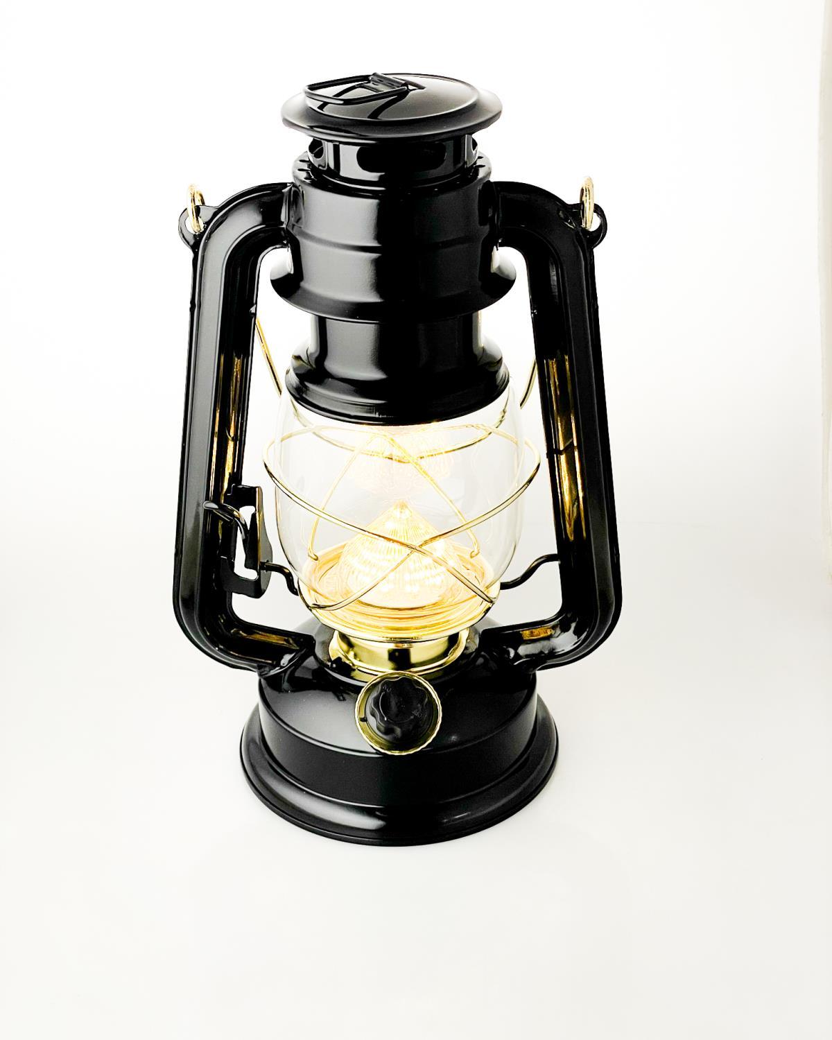Fjøslykt 235 LED Svart & gull H=24,5cm LED-fjøslyk
